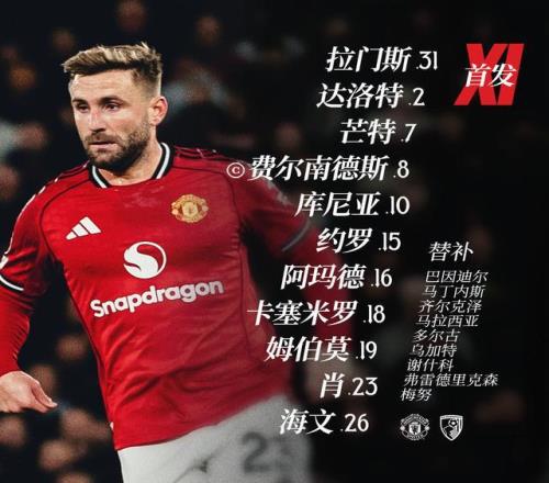 北京时间12月16日4点,25-26赛季英超第16轮,曼联坐镇主场迎战伯恩茅斯。 面对正处中下游的樱桃军团,阿莫林派上了库尼亚单箭头,身后是姆伯莫和芒特。后防线有所轮换,约罗、艾登-海文和卢克-肖搭档三中卫,为这场比赛的抽象埋下了伏笔!