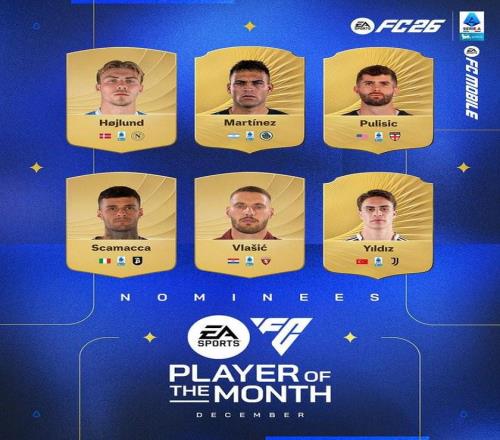 北京时间1月8日,意甲官方公布了联赛12月最佳球员候选名单,这6名球员为霍伊伦、劳塔罗、普利希奇、斯卡马卡、弗拉希奇、伊尔迪兹。